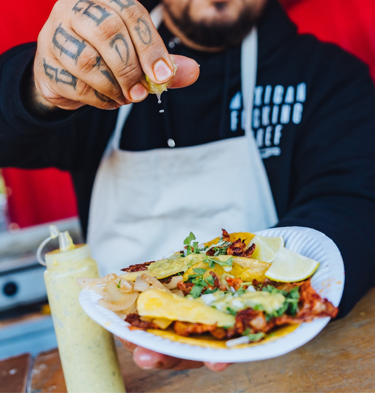 Comfort food kan op mijn eigen festival natuurlijk niet ontbreken. Daarom hebben we het beste van het beste geselecteerd waar je nooit genoeg van gaat krijgen. Zo brengt Sunny Birdz fried chicken en geloof ons: zo crunchy at je het zelden. Of duik in de Mexicaanse keuken bij onze chilaquiles bar. Nog nooit van chilaquiles gehoord? Denk: nacho’s, maar dan 10 keer lekkerder en met een heerlijke spicy twist. Eén hap en je bent verkocht. Als je aan comfort food denkt, denk je aan rook, vuur en BBQ.